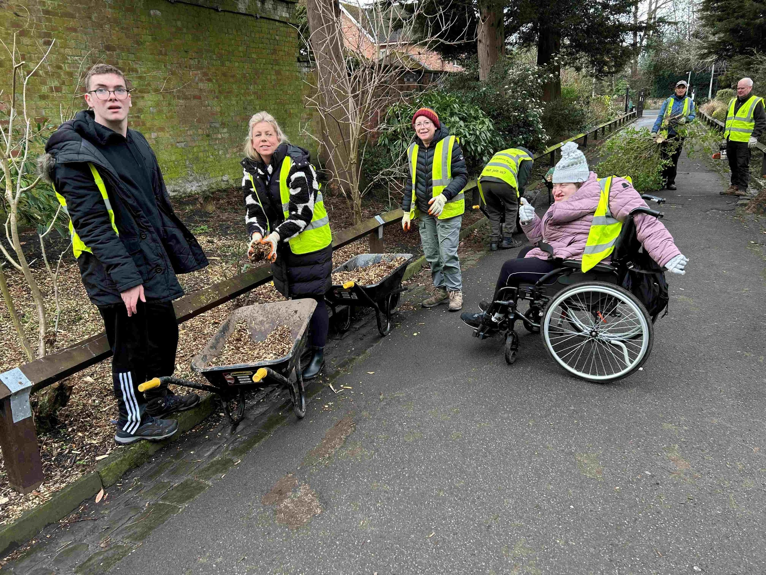 Meanwhile around the corner along the path to Wilmslow Road, picture 7, shows some of our team from Brentwood School also spreading mulch but with their material of choice being woodchip! This was a far cleaner material for working with! Thank you all - this was a fabulous result and made a huge difference to the look of the flower beds.