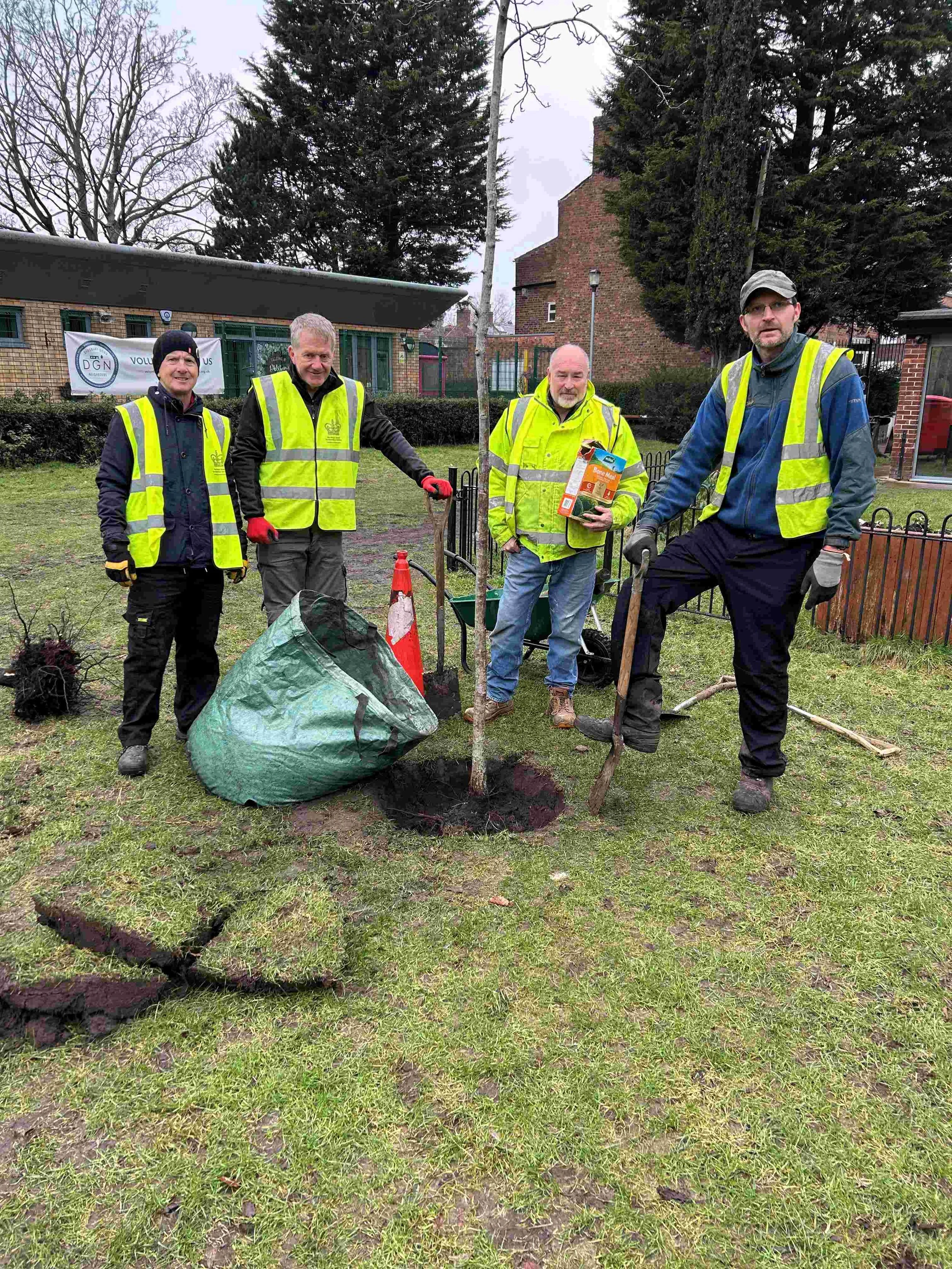 Picture 3 shows Richard, Adrian, Murray and Carl N carefully replanting one of these beautiful trees. The impact of 3 of these beautiful trees in a row is just amazing. Thank you all.