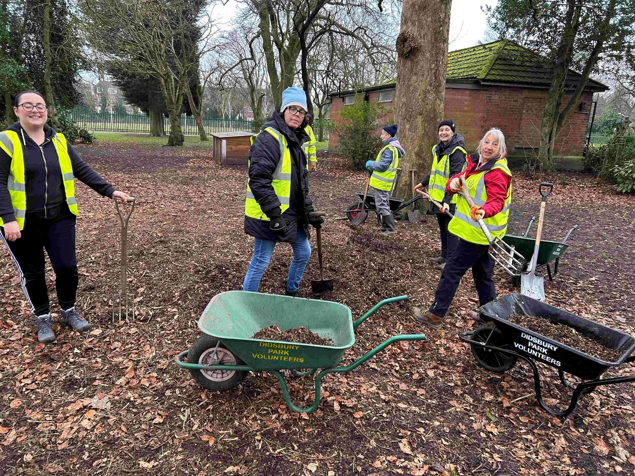 Over the Christmas period the children's playground has been incredibly popular. This heavy use of the playground combined with the wet weather has meant that the woodchip path to the playground has taken an amazing amount of traffic and so today one of our priority jobs was to replenish the whole path with a fresh layer of woodchip. I am pleased to say that we had a large team busy on this task which they successfully completed by the end of the morning.
