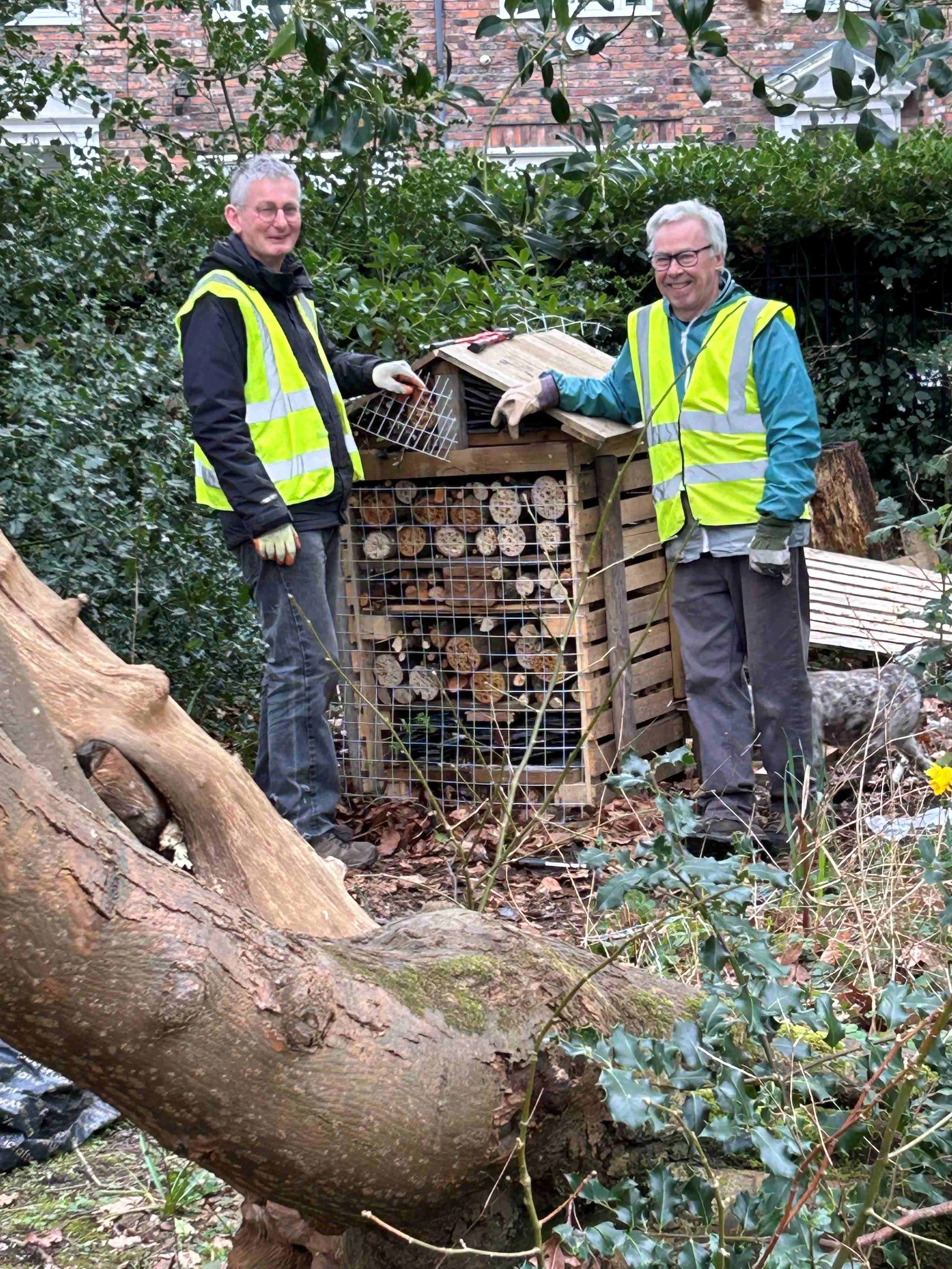 Picture 10 shows Kevin and Roger happily building another bug hotel in the woodland area. This is a huge improvement on the existing ones in this area. Thank you guys.