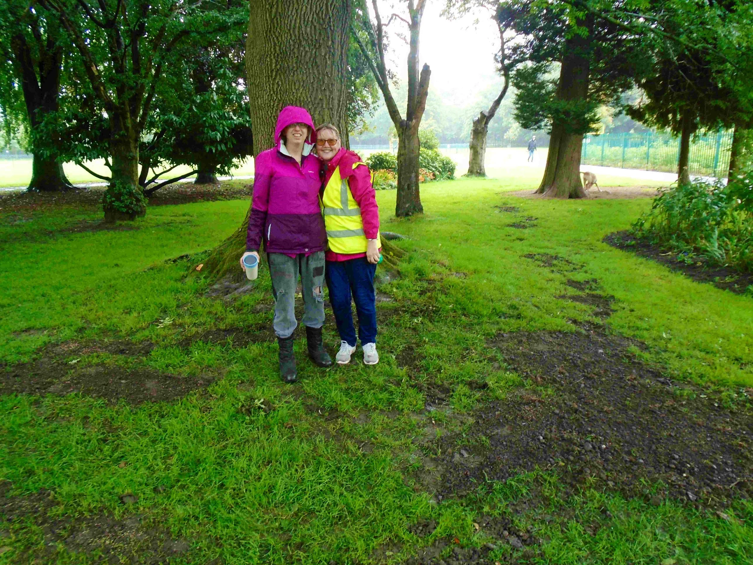 Picture 6 shows Grace and Debbie (looking a bit wet) in amongst the areas of bare grass where they had just prepared the ground and then sown it with grass seed.