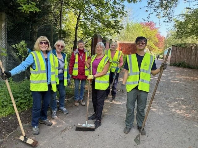 Picture 4 shows our team of Joyce, Sandra, Gill B, Wendy, Anne W and John all having fun in the sun and doing an excellent job tidying up the Poppy Path and sowing more poppy seeds. Thank you to Lis, also part of this team, who took the photo. Thank you all, and fingers crossed that all the poppy seeds germinate this summer.