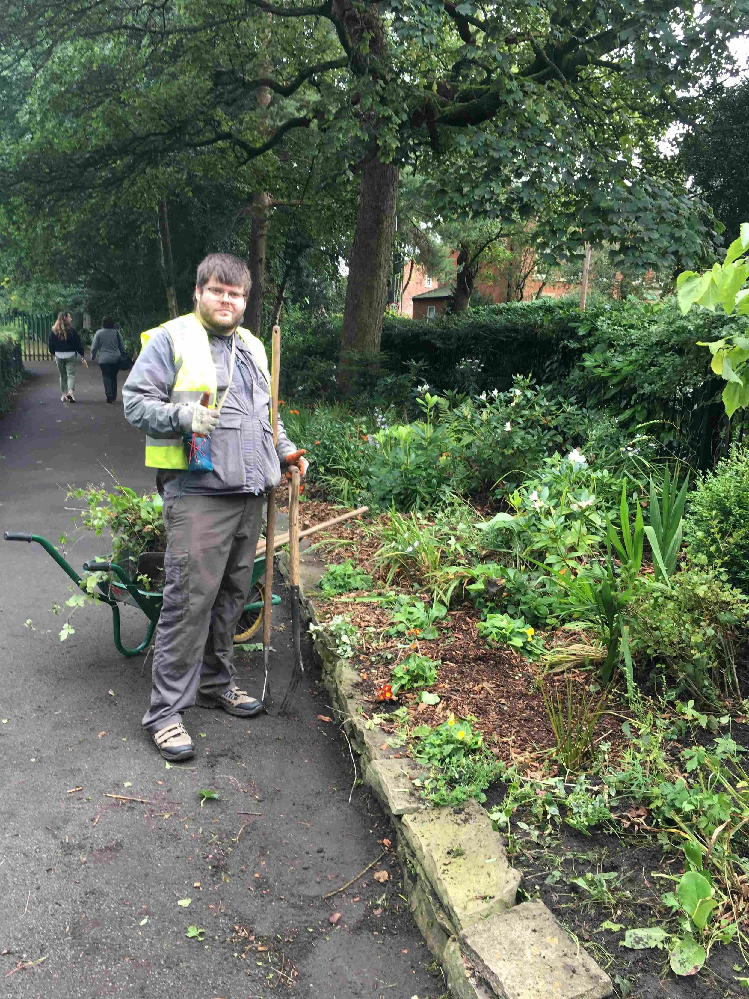Following a brief discussion with Graham, who looks after the cafe garden for Didsbury Good Neighbours, we offered our services today to help tidy up the cafe garden before our coffee break.