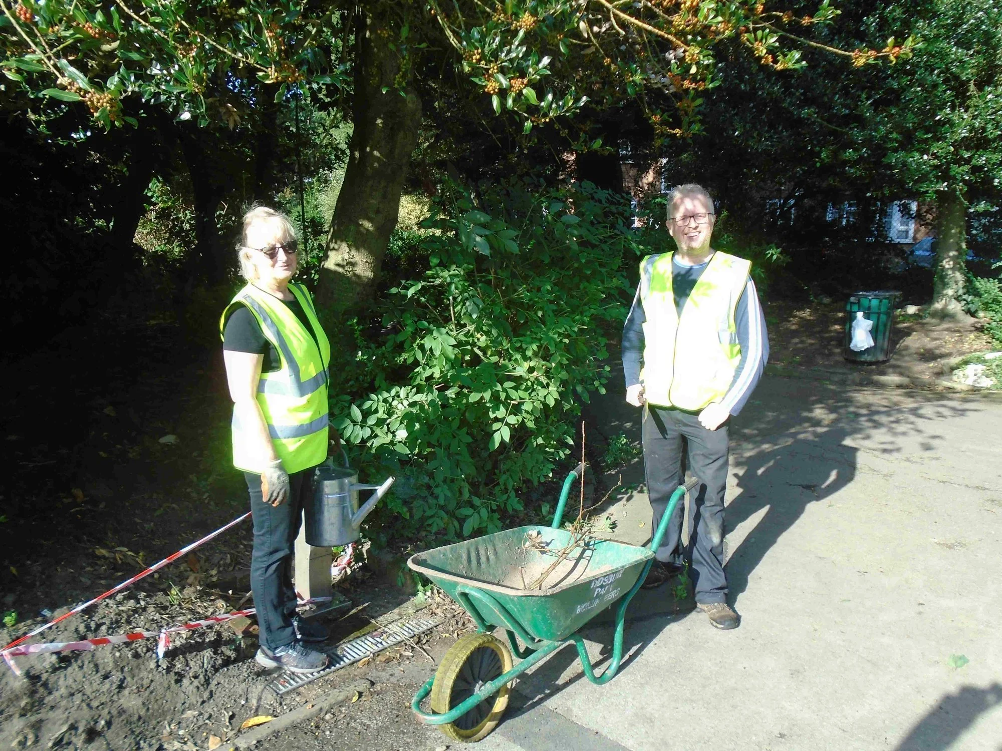 It was great to see two familiar faces joining us again this morning. We were all very pleased to welcome Roger and Grace back with us once again and we were also joined by Tony, our Park Ranger from MCC, who did some great work applying cold tarmac to potholes by the Gillbrook Road entrance and also along the path next to the repaired section of the Flower Walk wall (see later). Everybody was made very welcome.