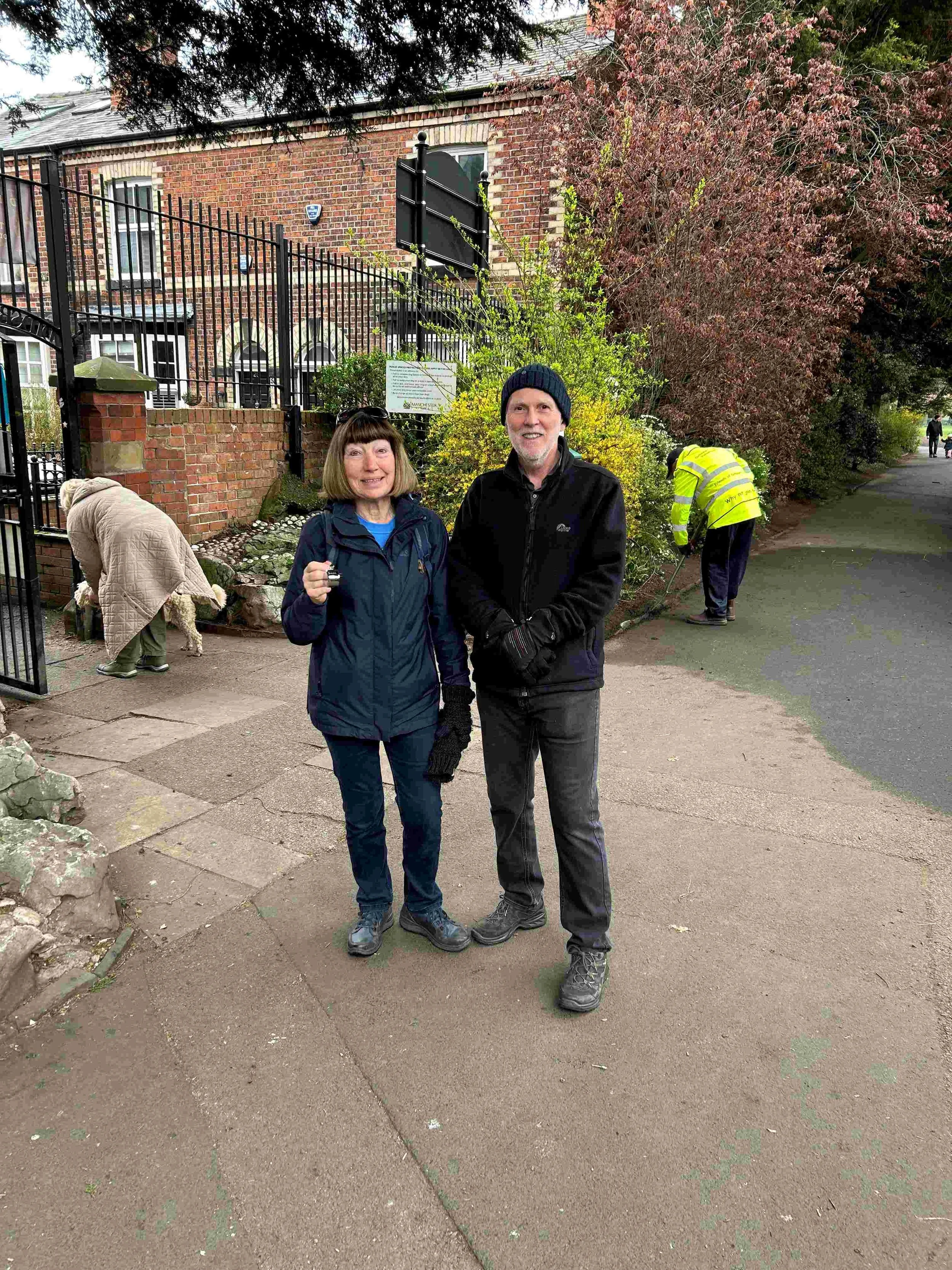 Joyce was also working on trees in the park this morning. Picture 2 shows Joyce holding her newly purchased 'clicker - counter' in her right hand as she set off on an audit count of all the trees, section by section, in the park. This is part of a major new project led by Joyce, David and Greg, to firstly find out more information about all our trees which we will be able to publicise and share with park users. Thank you Joyce.