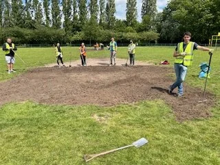 Picture 6 shows about 10 of the team preparing one of the football pitches for reseeding. Another large group of volunteers worked incredibly hard in the Bird Garden where they made a huge improvement to the hedging.