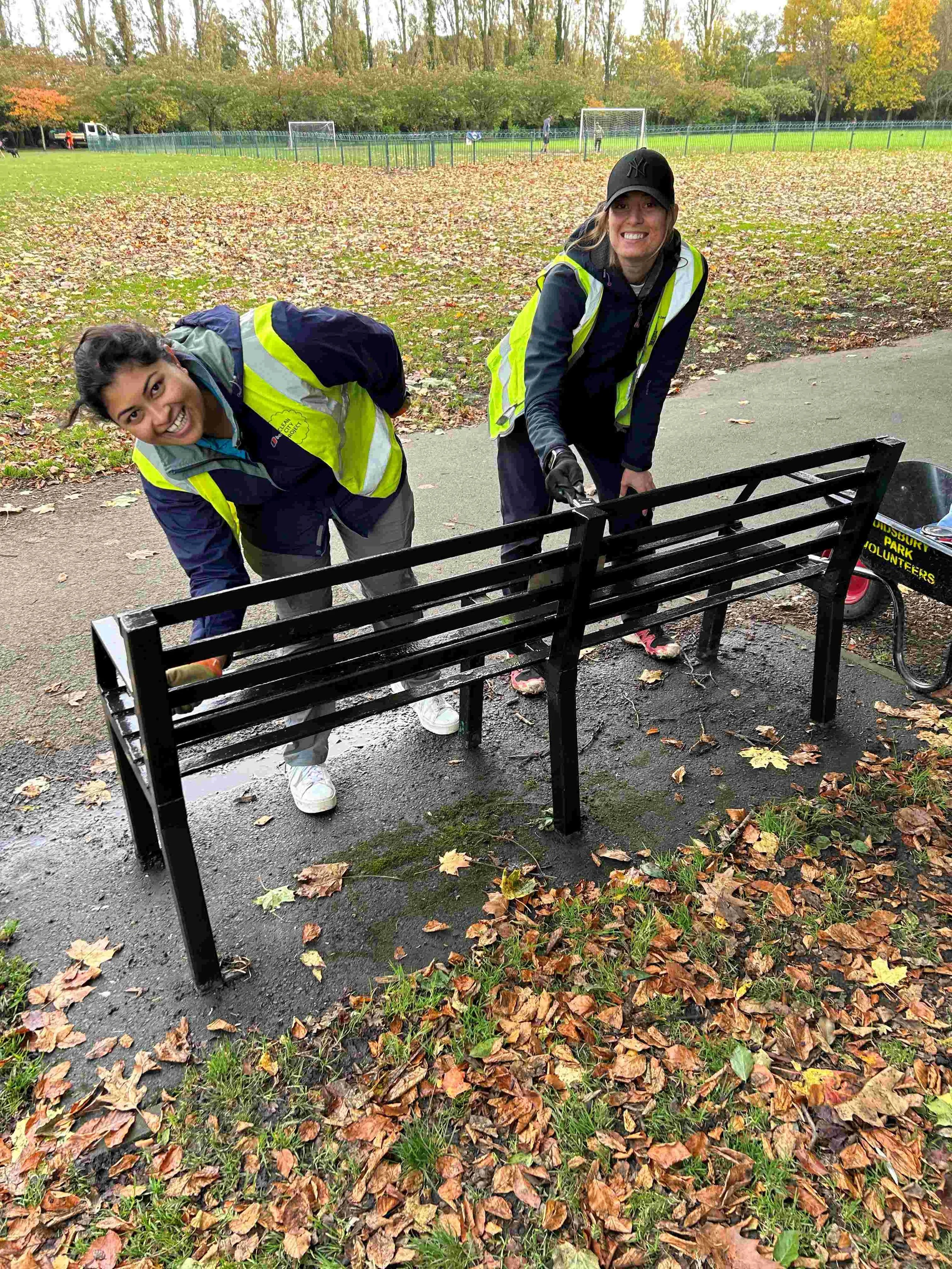 The bench dedicated to Barbara Dixon: Picture 2 shows a couple of members of the Lendlease team giving 2 coats of Hammerite black paint to the metal bench dedicated to Barbara Dixon. This bench, which is one of the oldest in the park was given a new lease of life and it now looks as good as new. Thank you.