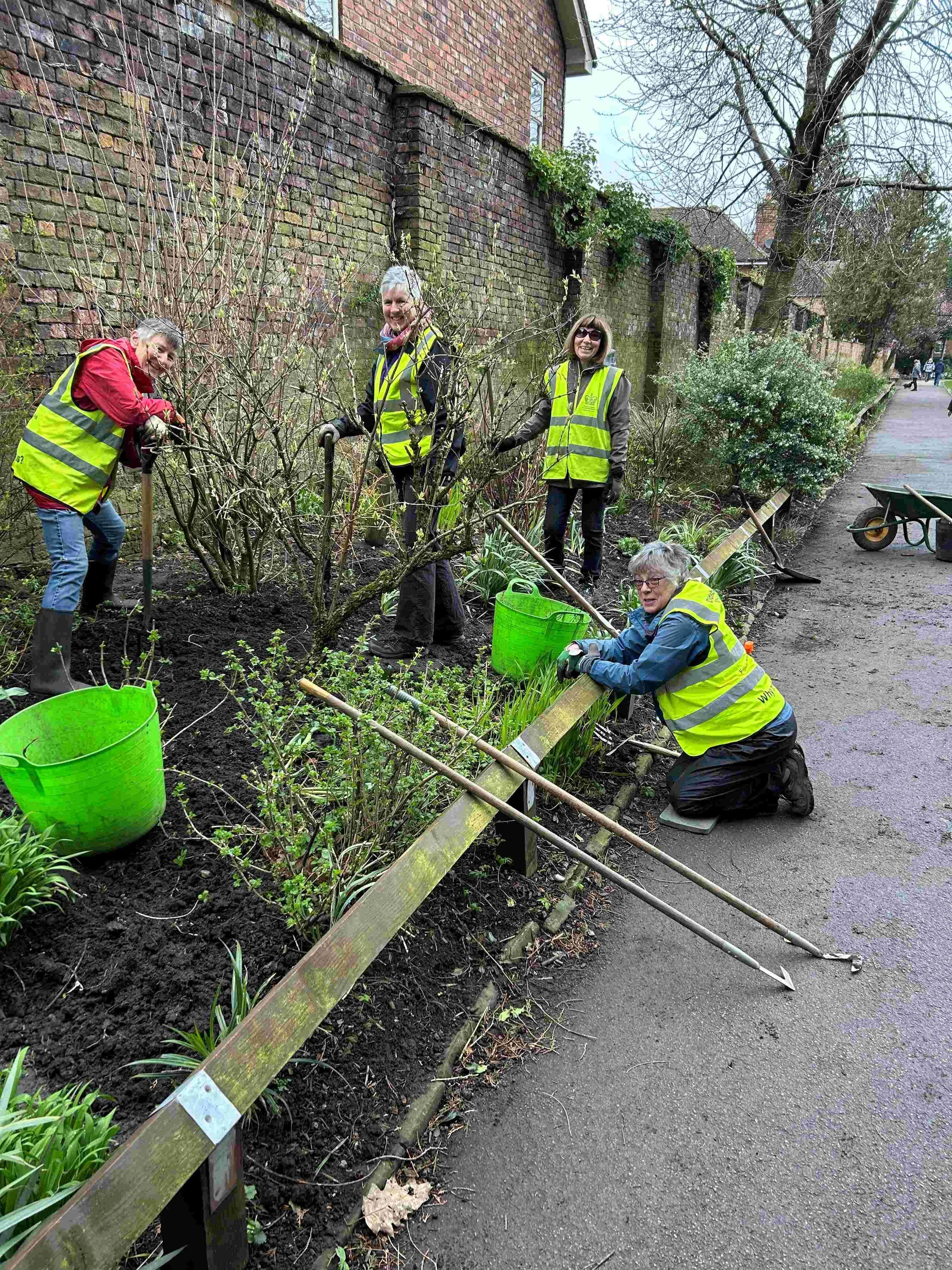 Meanwhile Julie and Lucy were adding the grasses into the flower beds along the path leading to Wilmslow Road. Thank you for not only planting these feature plants but for also continuing to prune and shape some of the shrubs in this area too. It is a real pleasure to walk along this pathway at the moment with the beds abundant with spring colours.