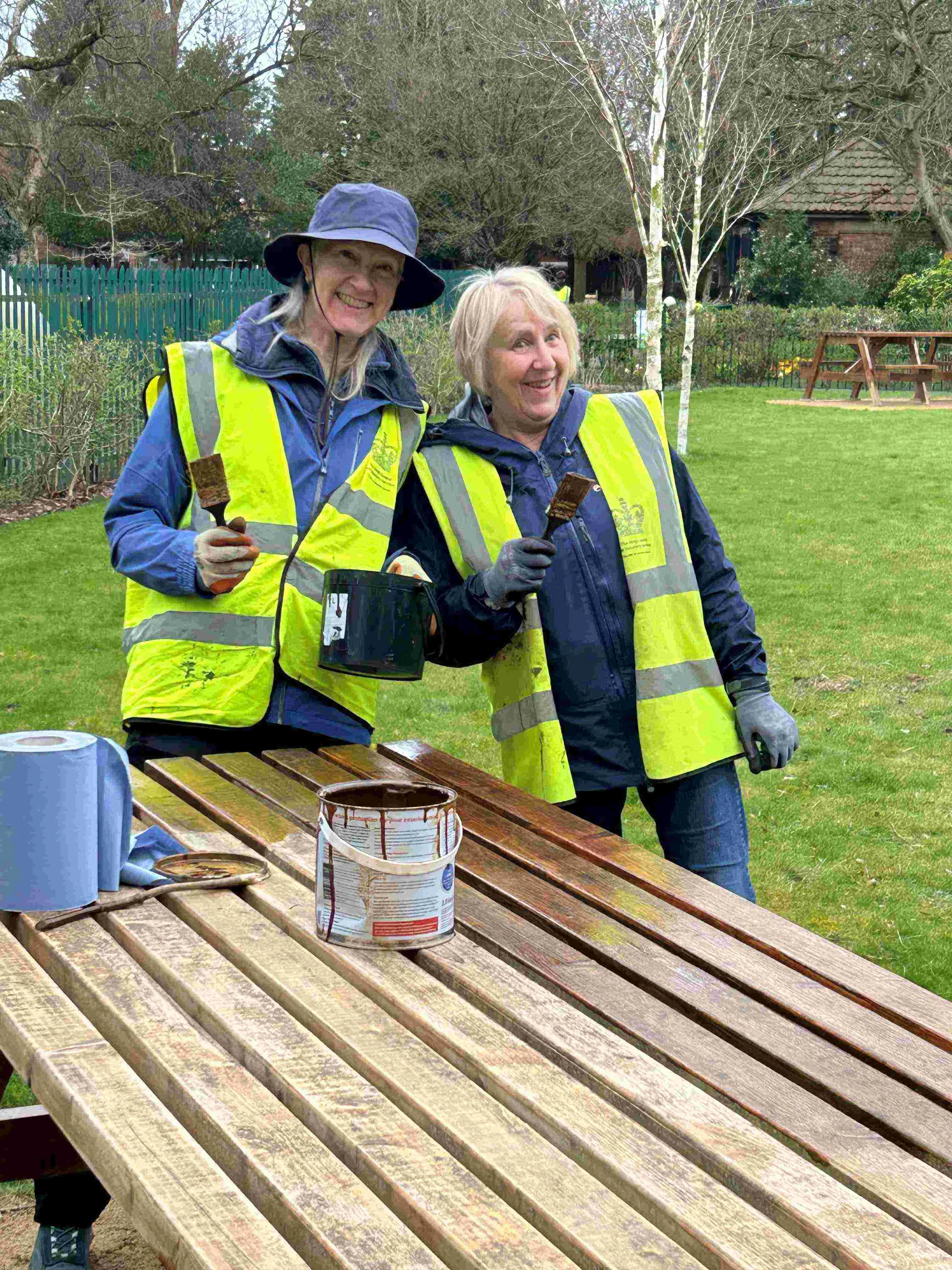 The main work in the wild flower meadow today consisted of tidying the edges of the wild flower area and painting the second picnic bench with preservative. Thank you to Allan for his dedication in trimming the whole perimeter of the wild flower section and to Sandra and Lorna who painted preservative on the second picnic bench.