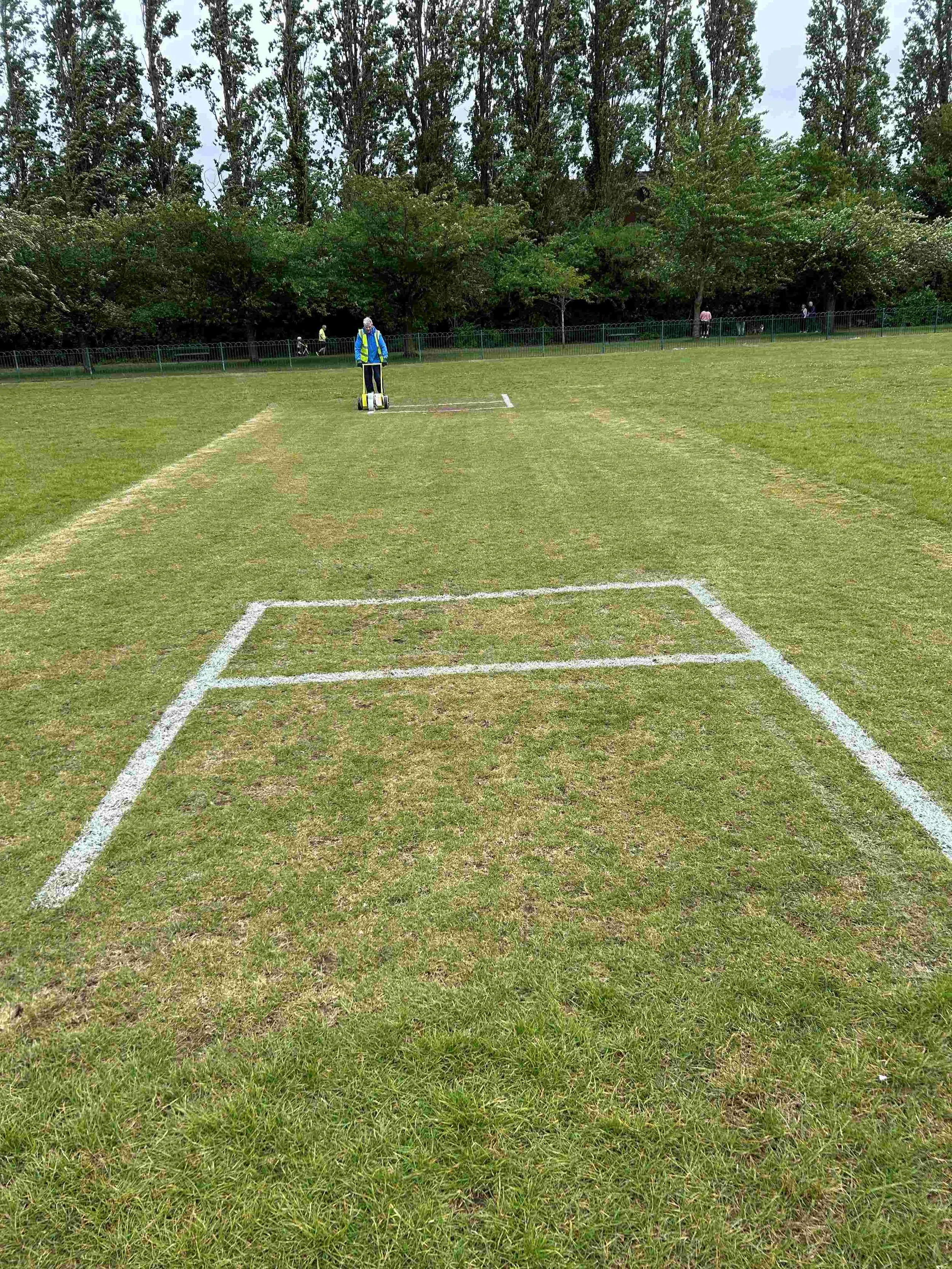 PIcture 10 shows the amazing results which can be achieved when somebody like Gary (pictured with the line marker) dedicates himself to creating an amazing cricket pitch. Every week Gary makes sure that this season's wicket gets a good cut and it is then meticulously marked out, ready for any enthusiastic young cricketers to experience 'time in the middle' on an excellent wicket. Well done Gary!!