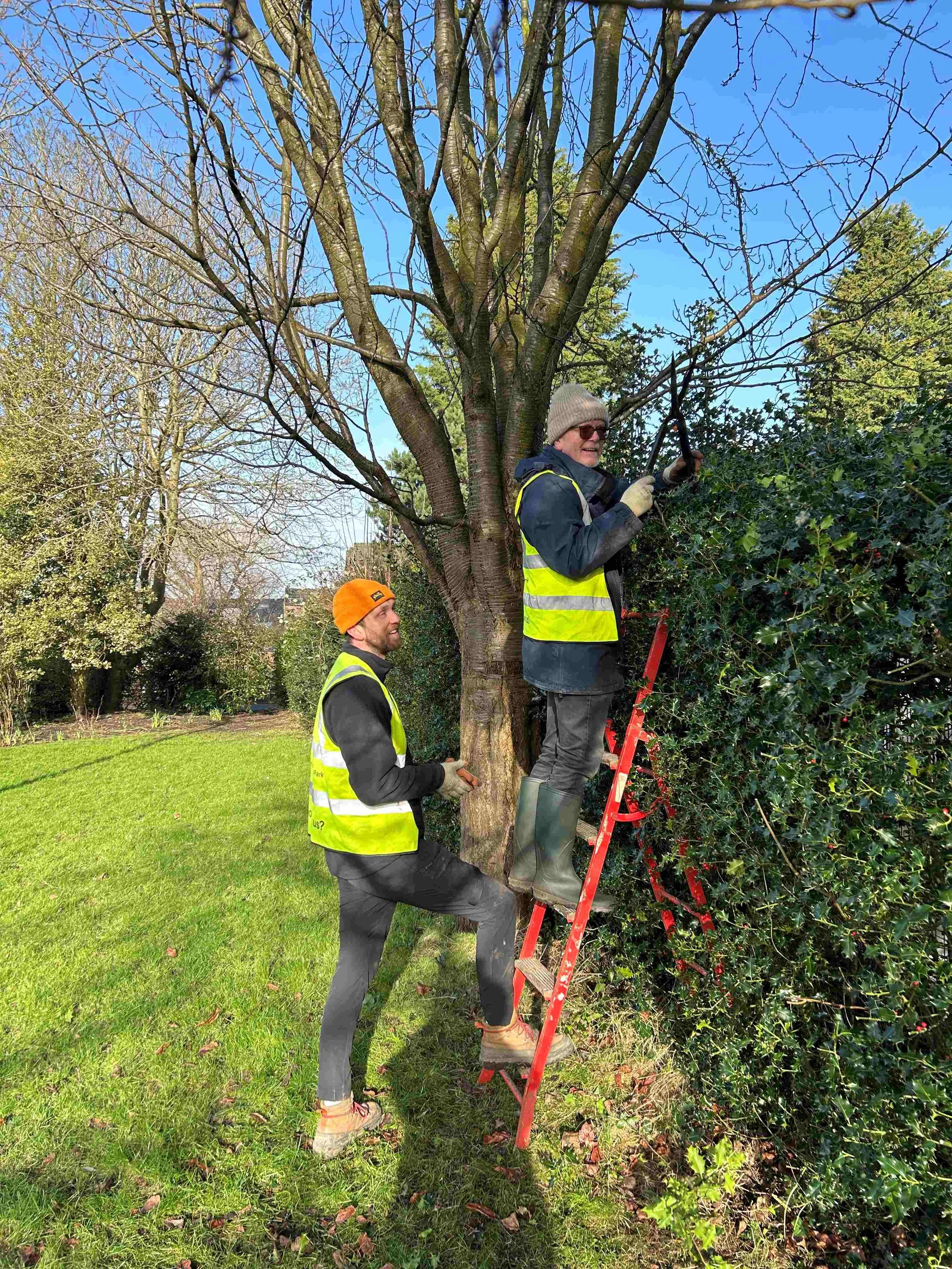 We were delighted to welcome a new volunteer called Jack today. Jack is Steve's son and together they did an amazing job this morning. Picture 9 shows them working together as they prune the large holly hedge next to the DNC.