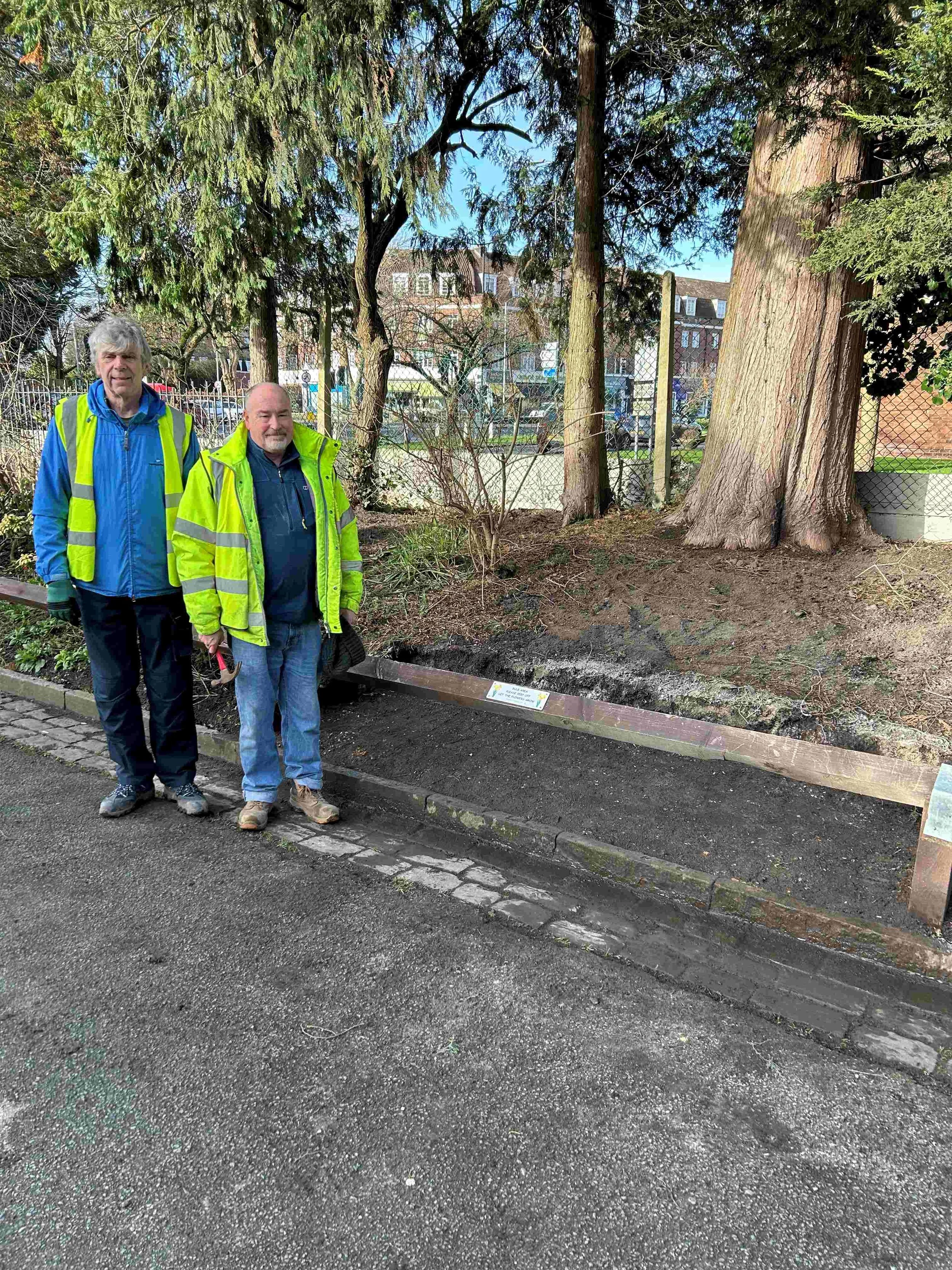 This was their second job of the morning, having already dug up the roots of a self seeded tree which both Joyce and the MCC arbor team had agreed needed removing. This corner of the park looks amazing now. Thank you both.