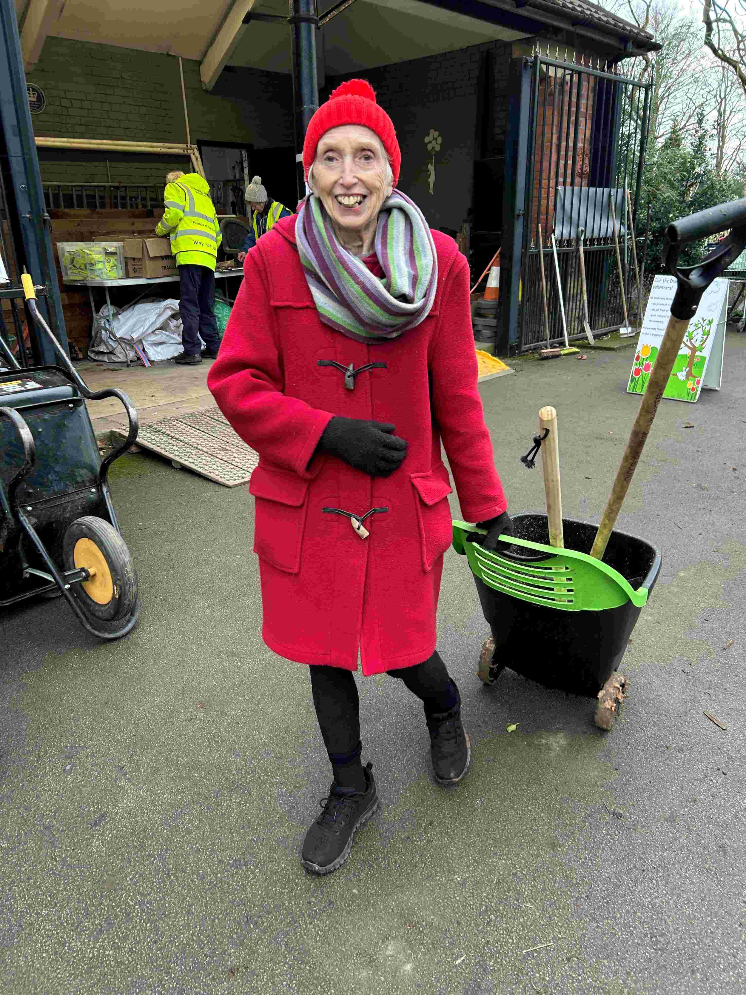 Picture 10 shows Brenda with her 'trug on wheels' loaded up with her special lightweight sweeping equipment as she headed off to do another spring clean of the area around the Gillbrook Road gate. Thank you Brenda - you are a star! Thank you also for donating a huge box of chocolate biscuits for our coffee break. They were enjoyed by everyone!